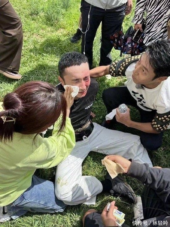 49. 某次外景录制中,他不慎摔倒,导致半边脸部严重肿胀淤青。