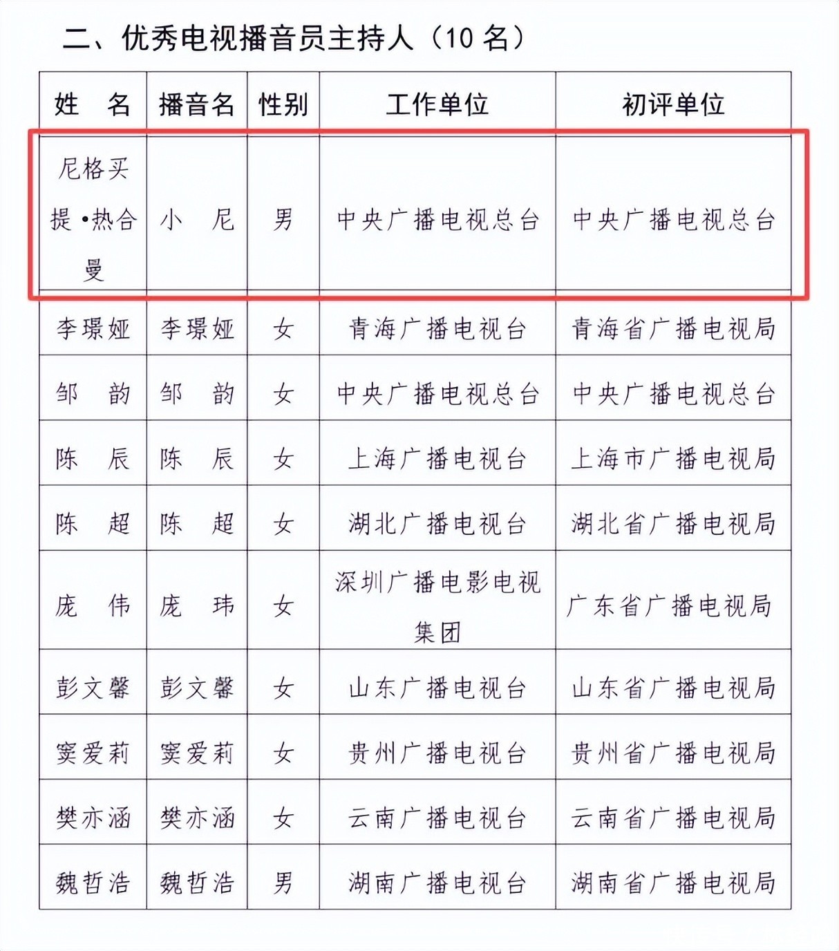 41. 凭借出色表现,尼格买提赢得了广泛国民认知度,并入选央视“十佳主持人”行列。
